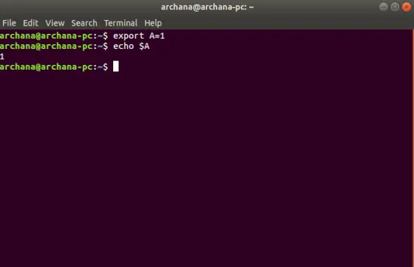 $ export NAME=Value or $ set NAME=Value>
