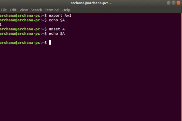 Para desarmar una variable de entorno, elunset>Se utiliza el comando o se puede asignar a la variable un valor vacío. Por ejemplo: