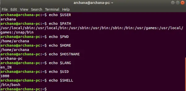 Para mostrar el valor de una variable de entorno, elecho>Se emplea el comando, como se demuestra a continuación: