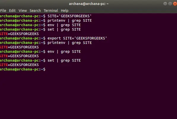 Para obtener una lista de todas las variables de entorno globales, Linux ofrece varios comandos: