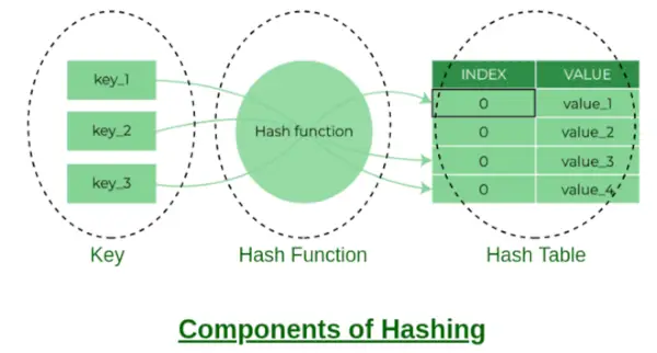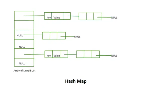 El valor devuelto por la función Hash es el índice del depósito para una clave en un método de encadenamiento separado. Cada índice de la matriz se denomina depósito, ya que es un depósito de una lista vinculada.
