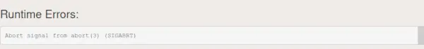 - SIGABRT: Es un error en sí mismo detectado por el programa y luego esta señal se genera mediante una llamada a abortar() función. Esta señal también la utiliza la biblioteca estándar para informar un error interno. afirmar() funcionar en C++ también usa abort() para generar esta señal. A continuación se muestra el programa para ilustrar el error SIGBRT:C++